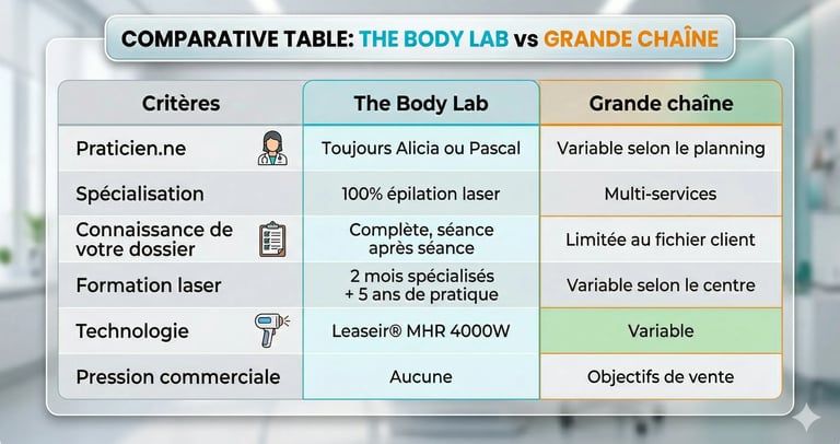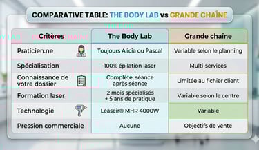 Depuis l'ouverture en septembre 2018, The Body Lab à Wavre a accompagné plus de 3 000 clients dans leur protocole d'épilation laser définitive. Femmes et hommes, phototypes clairs et foncés, zones simples et cas complexes.
